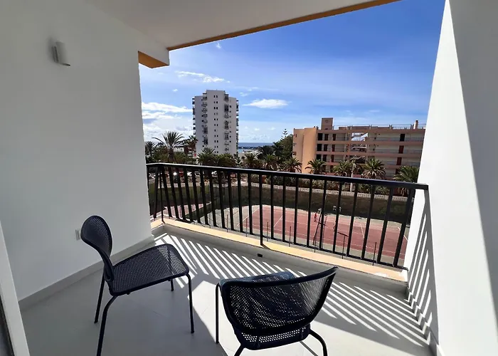 Seaview Modern Apartment In Downtown Los Cristianos med 1 sovrum, som ligger inom 6 minuter till fots från Teneriffa, erbjuder solarium. Den 70 m² stora lägenheten har en terrass och en pool för gästernas ultimata avkoppling.